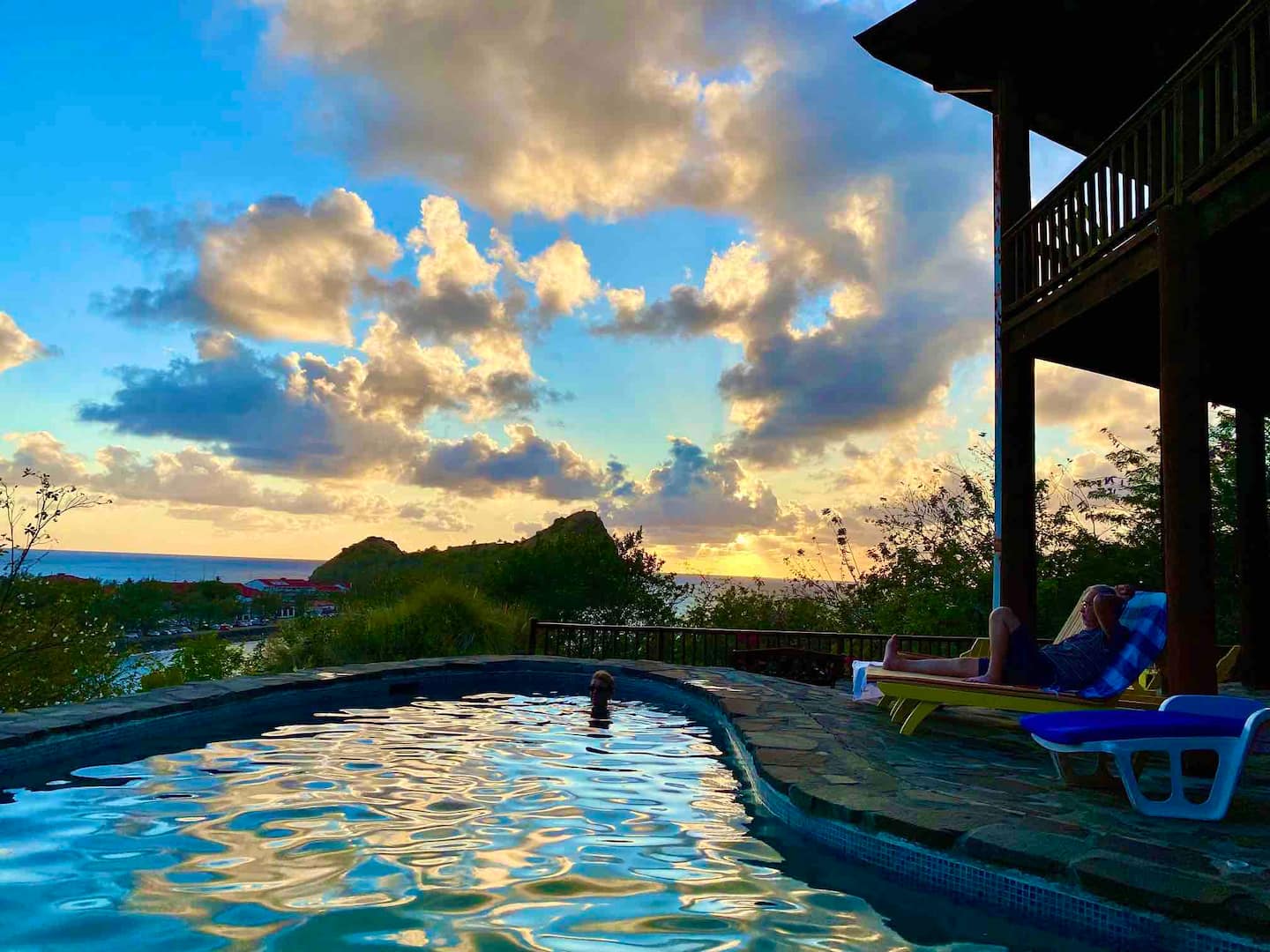 Zandoli is a spacious, Balinese style, four bedroom (sleeps 8) two-storey wooden villa on Pigeon Beach Road with swimming pool and landscaped private grounds.