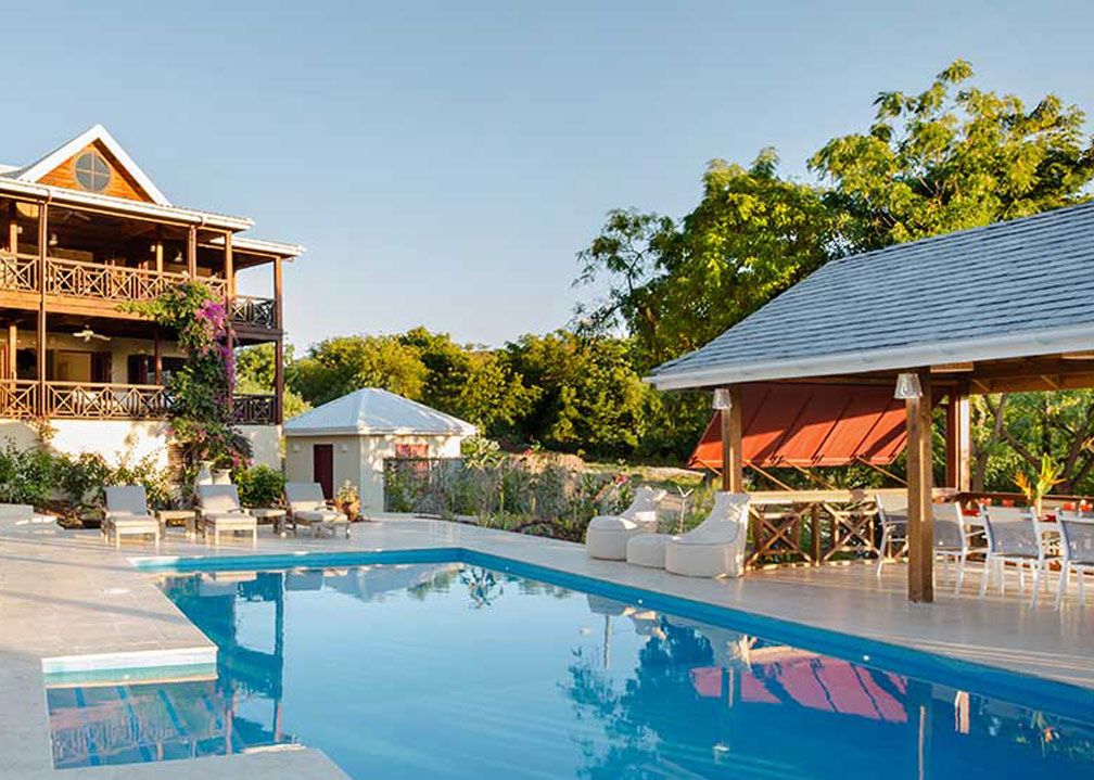 Standing on a gently sloping hillside within the National Parkland of Historic English Harbour and Nelson's Dockyard, the lovely sandy beach at Pigeon Point (voted one of the ten best beaches in the Caribbean) is just 2 minutes walk away.
